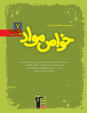 این کتاب از 50 عنوان کتاب درسی هنرستان و غیر درسی در زمینهی مواد و مباحث مرتبط با کنکور هنر در درس خواص مواد تالیف شده است. 31 فصل دارد، در انتهای هر فصل تعدادی تست برای تسلط بیشتر داوطلبان آورده شده است. مبحث درس صنایع دستی در این کتاب به طور کامل آورده شده که شما میتوانید از آن برای درس درک عمومی هنر نیز استفاده کنید.این کتاب قابلیت این را دارد که دانشجویان برای کارشناسی ارشد هم از آن بهره ببرند.